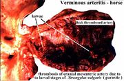 | 12:23, 29 August 2007 | Thrombosis strongylus vulgaris.jpg (file) | 49 KB | Lizzies | Thrombosis in the cranial mesenteric artery, caused by ''Strongylus vulgaris'' larvae. Pending permission from Brian Smyth. | 1 | |