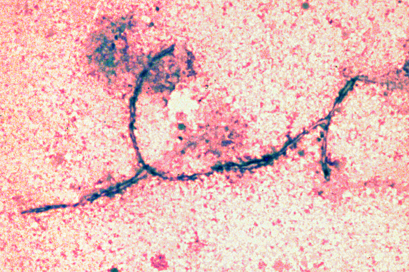 Image from 'Veterinary Cytology', with permission from Manson Publishing, as part of the OVAL. This is a photomicrograph of nasal aspergillus |